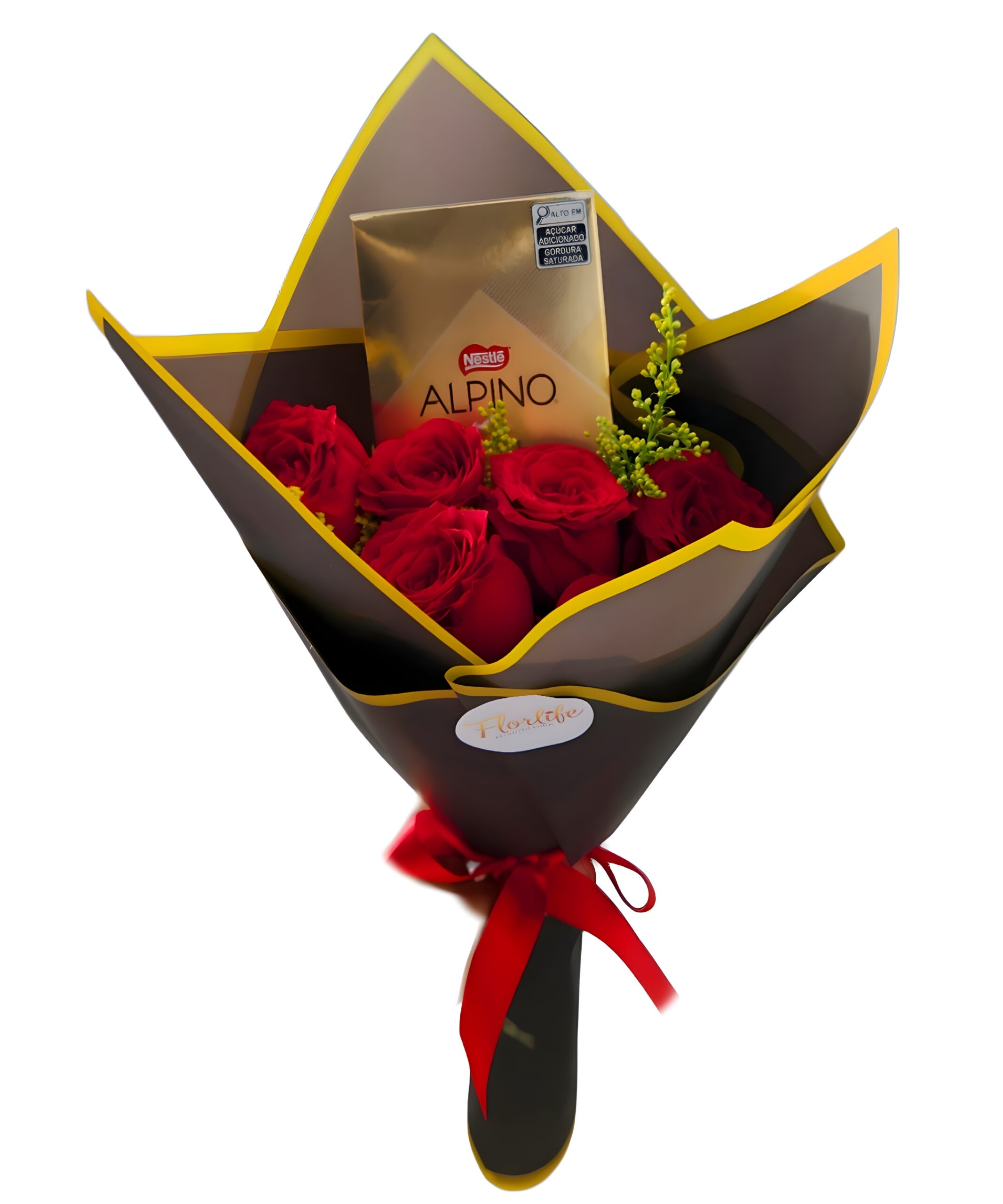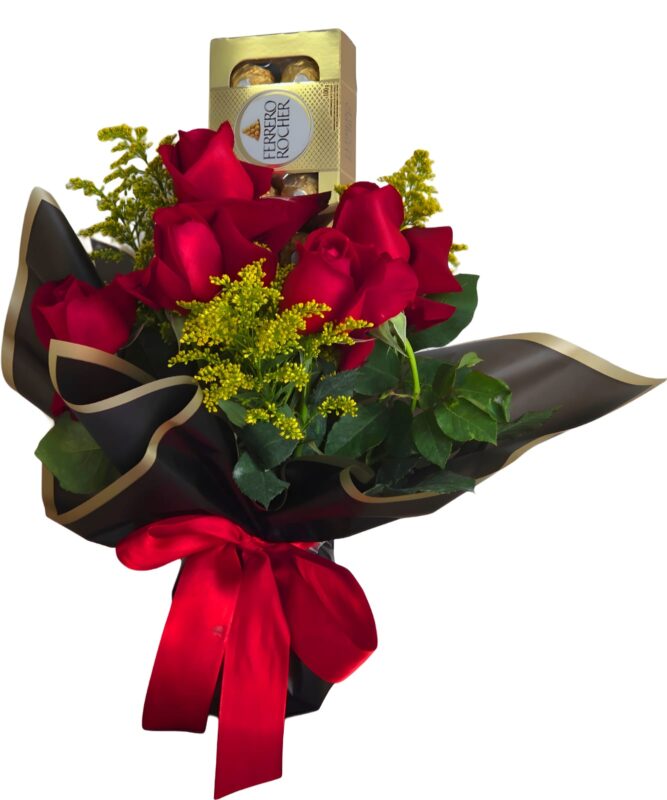 Buquê 6 rosas e chocolate